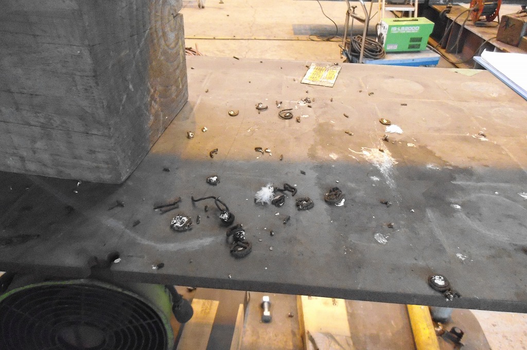 橋梁や建築物の大型鉄骨の工場です。製品にハトの糞が落下し、汚しています。